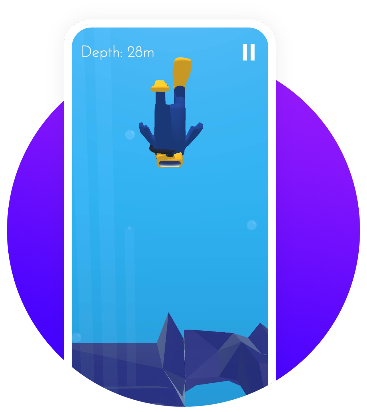 The game is controlled by swiping left and right to avoid obstacles such as rocks and sea mines while the speed incrementally increases as you get deeper.
